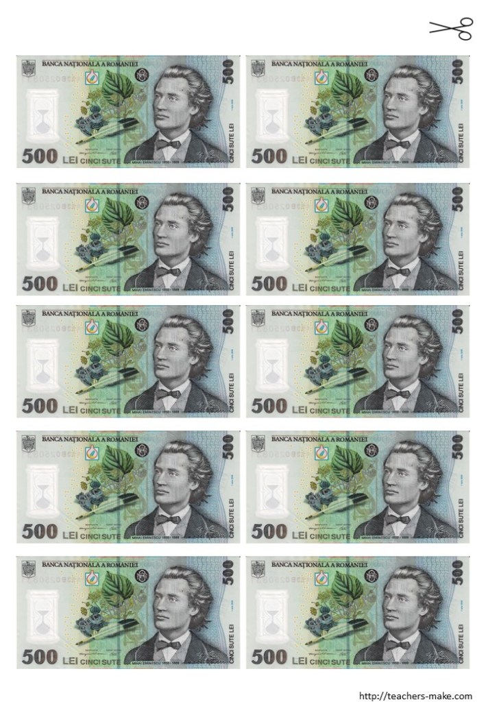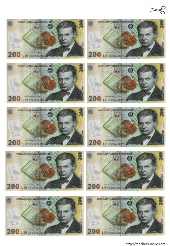 -8 pagini cu bancnotele puse în circulație în România, cu ajutorul cărora puteți iniția diferite jocuri în cazul în care copilul a ajuns la nivelul de dezvoltare al gândirii simbolice