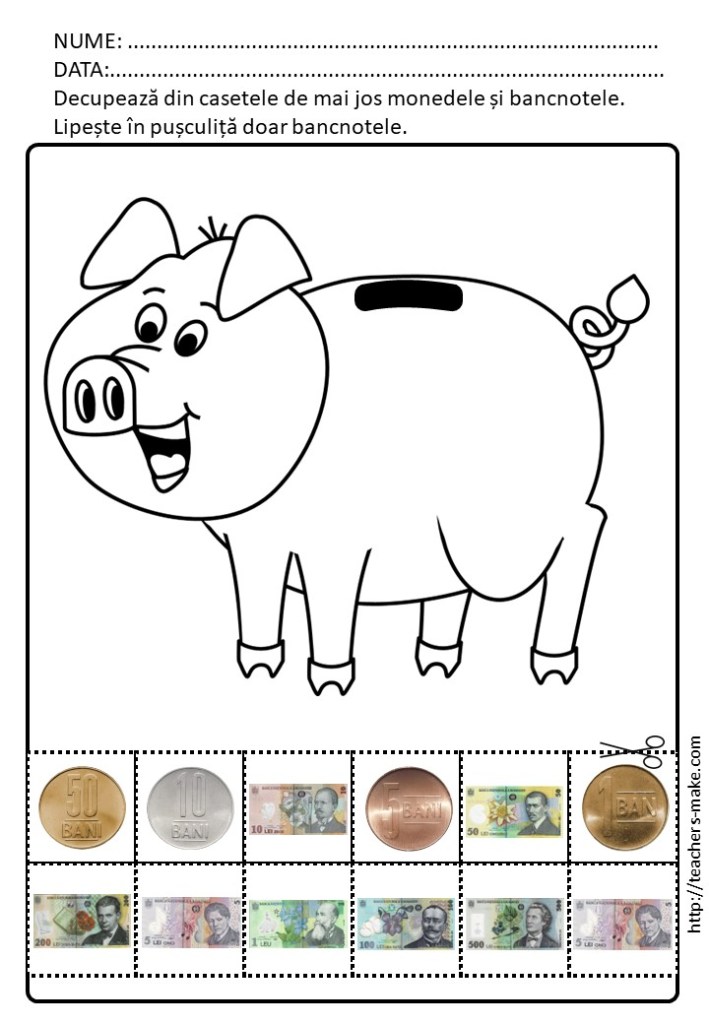 De data aceasta vă propunem o serie de materiale referitoare la bani, pentru că e important să învățăm copiii să se descurce cu acest aspect al vieții zilnice.