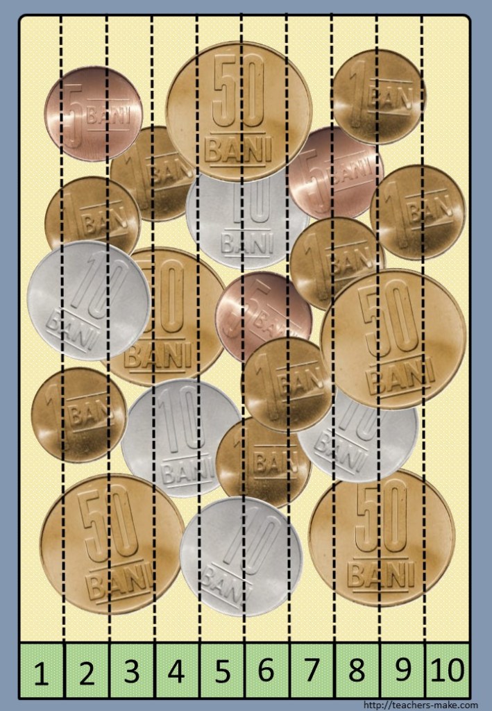 -în ceea ce privește monedele, considerăm că este mai facil și mai relevant pentru copil dacă le folosiți pe cele reale.