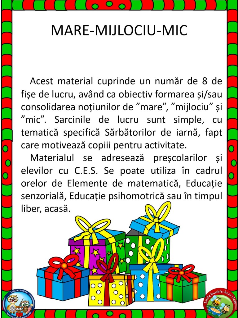 MARE MIJLOCIU MIC /Fișe de lucru/Material realizat de CORCHEȘ ANCA
