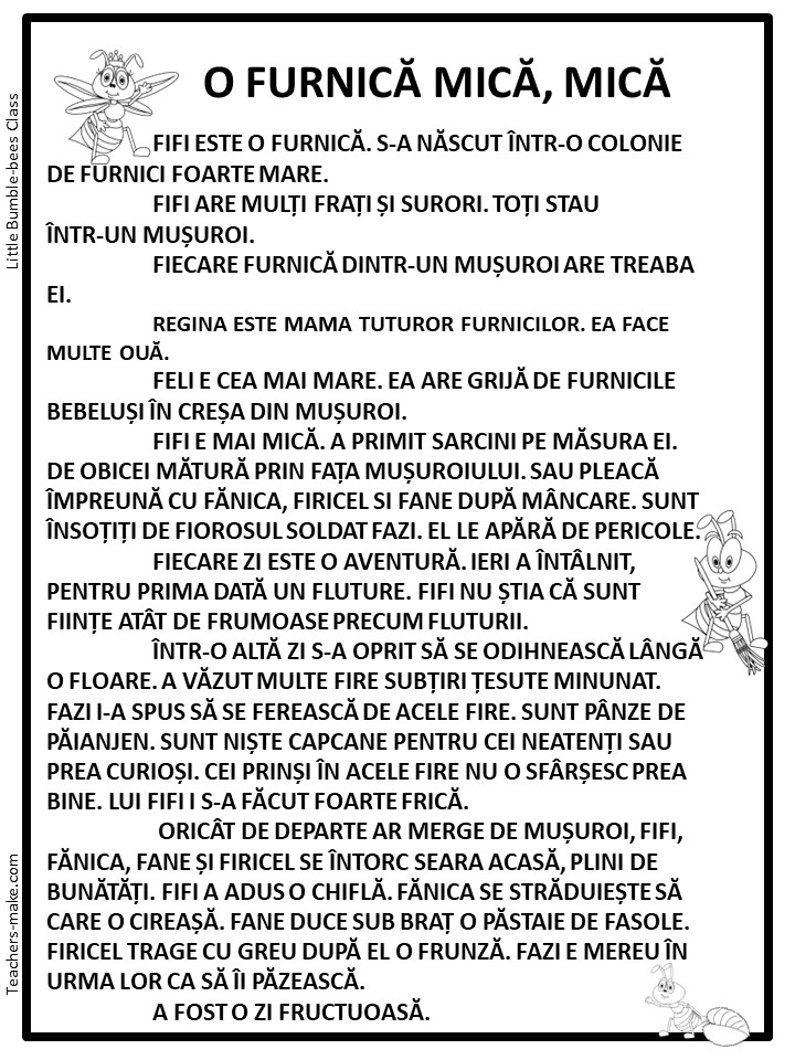 Citire-Scriere-Comunicare/O FURNICĂ MICĂ MICĂ