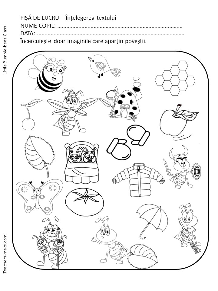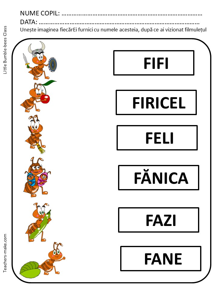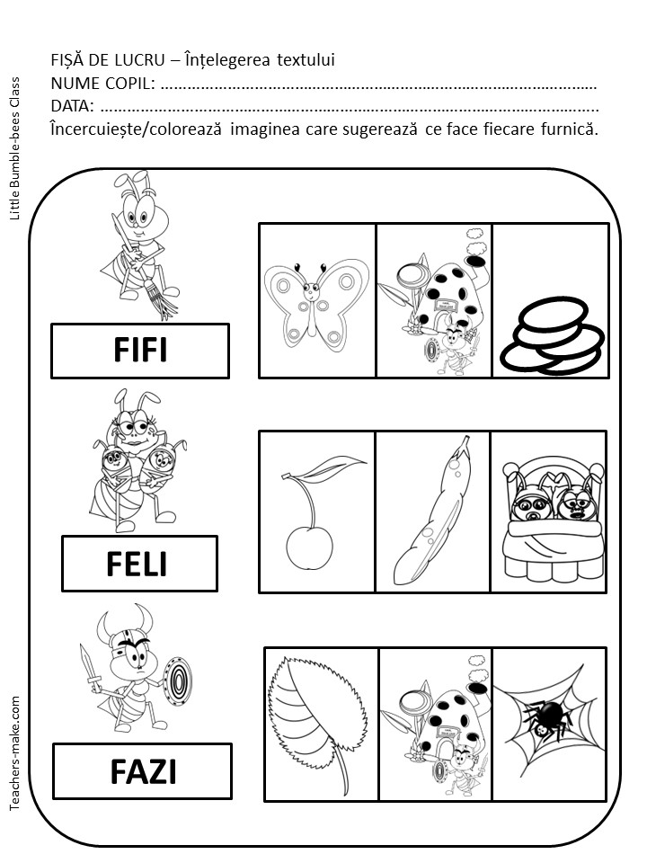 O furnică mică, mică fișe de lucru – comunicare