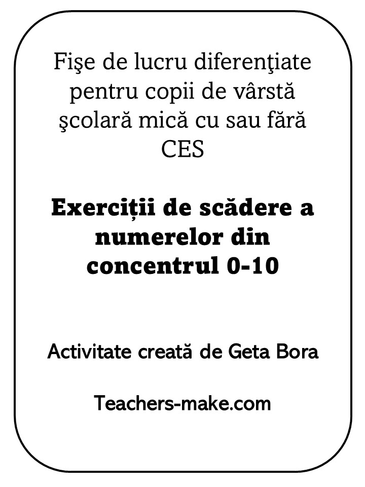 Fişe de lucru diferenţiate pentru copii de vârstă şcolară mică cu sau fără CES / Exerciţii de scădere a numerelor din concentrul 0-10