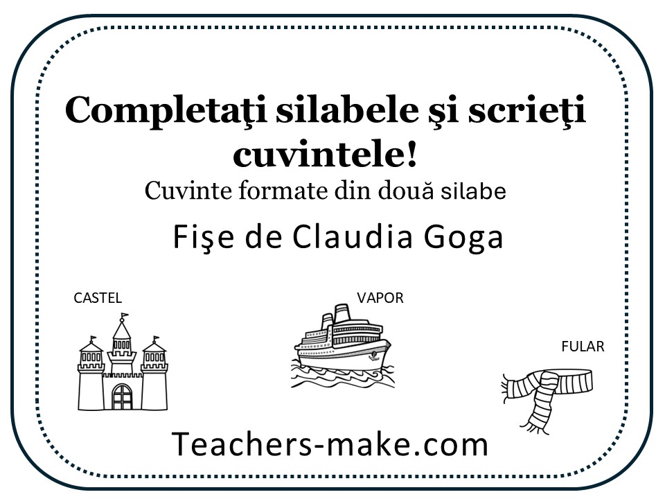 Completaţi silabele şi scrieţicuvintele!/Cuvinte formate din două silabe